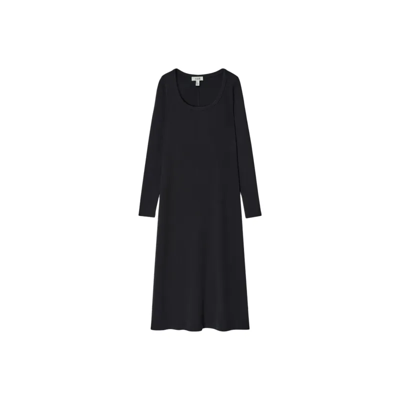 COS Длинное платье с длинными рукавами женское темно-синий