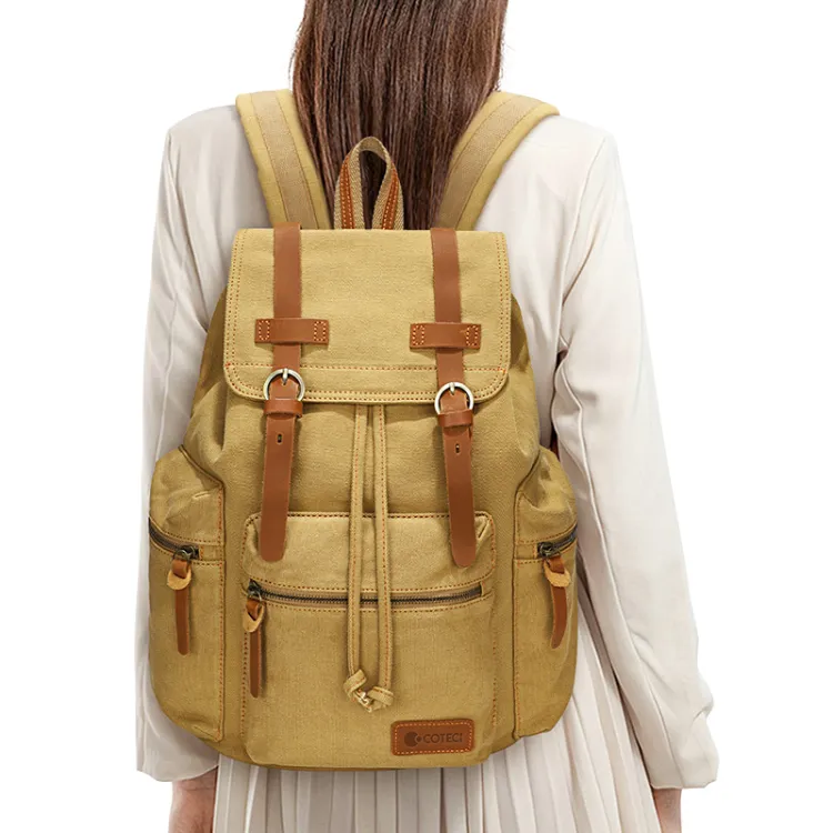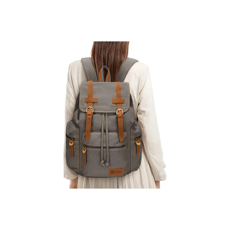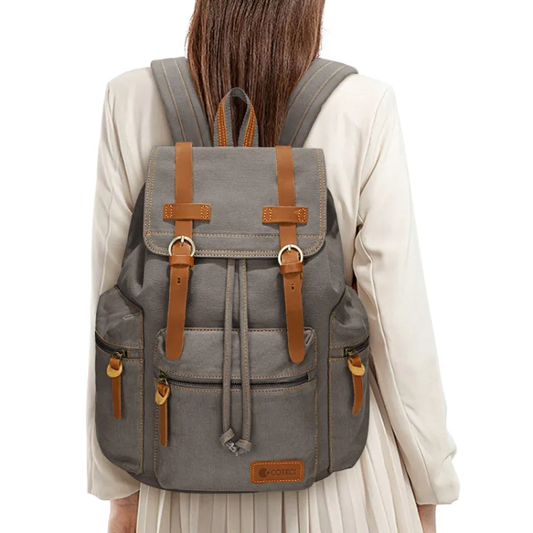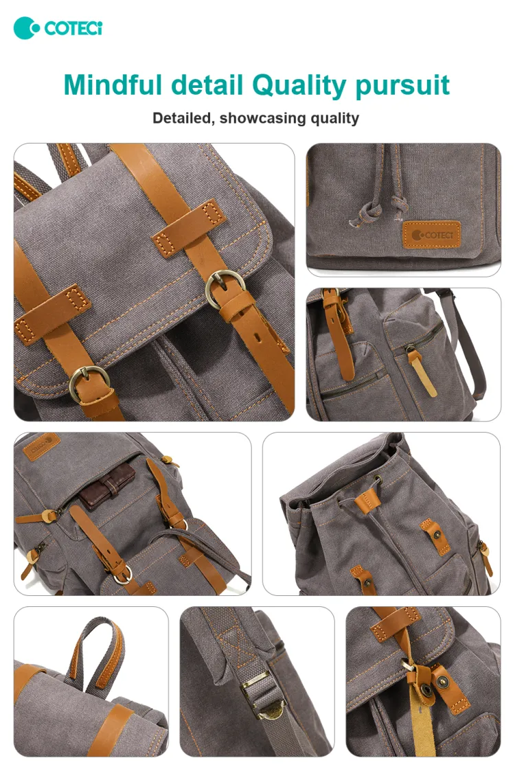 COTECi Crazy Лошадь Коровья кожа промытый холст рюкзак большой унисекс чернильно-серый серый кофейный хаки