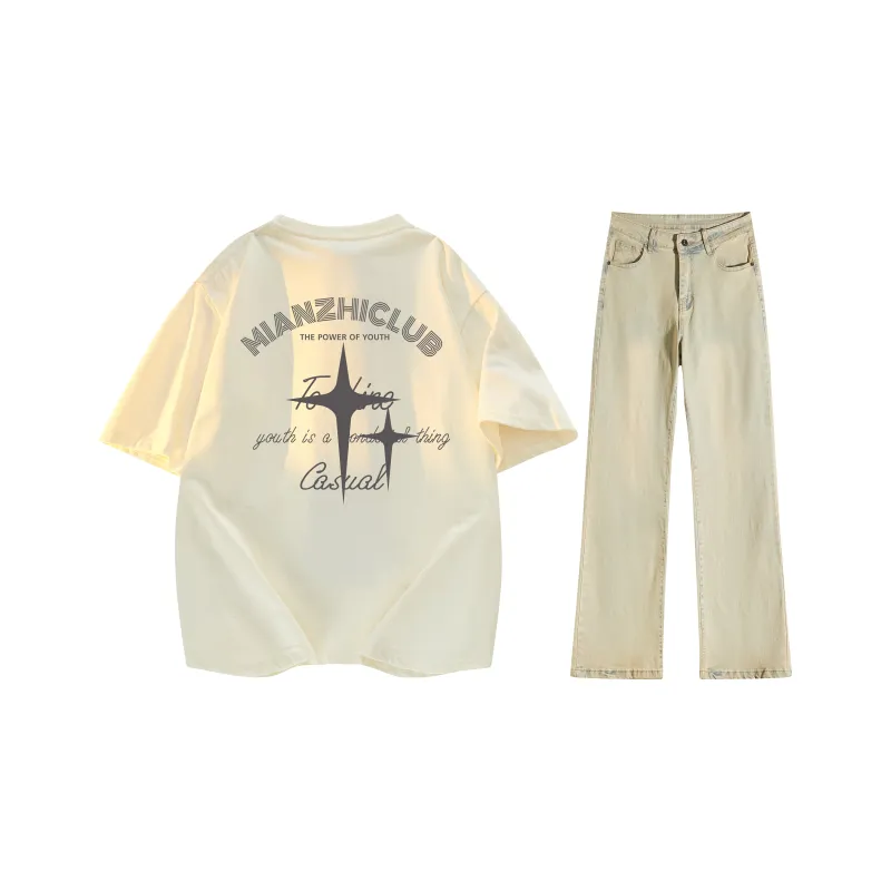 Комплект:Светлый абрикос + желтые грязные джинсы