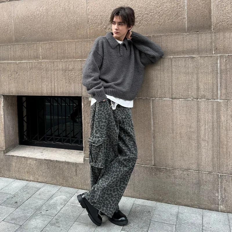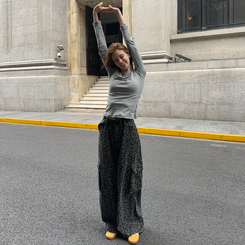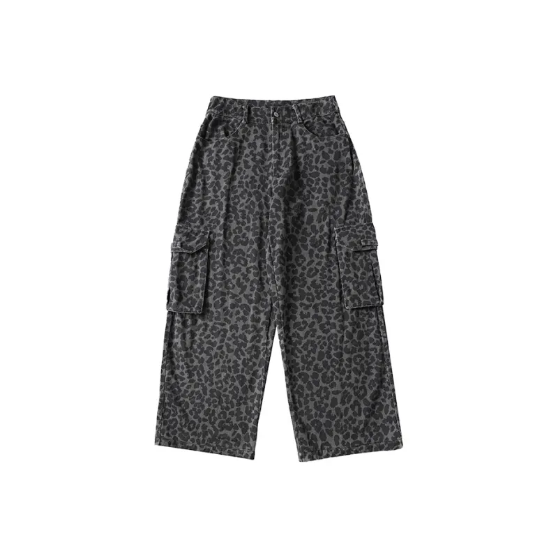 COUNTRY MOMENT Джинсы Унисекс Черный Серый Леопард с принтом