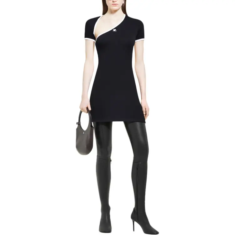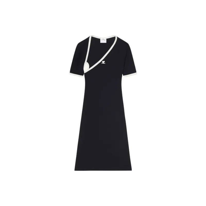 COURREGES FW24 Мини Slash Контрастность Платье Короткий Рукав Платье Женское Черное Наследие Белый Черный Классический Белый