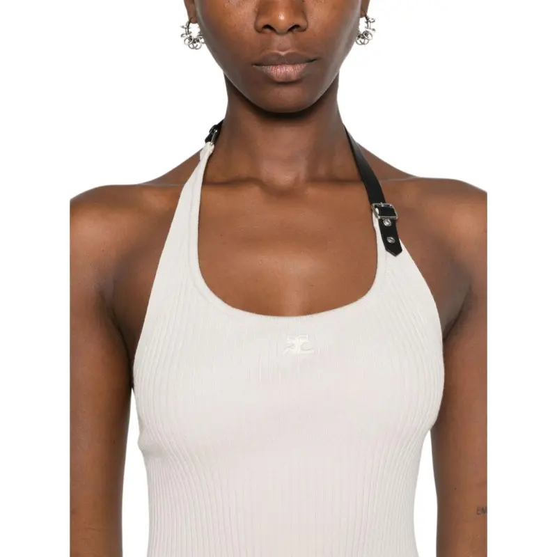 COURREGES Holistic Пряжка Rib Knit Майка Топ на бретелях Женские Бежевый