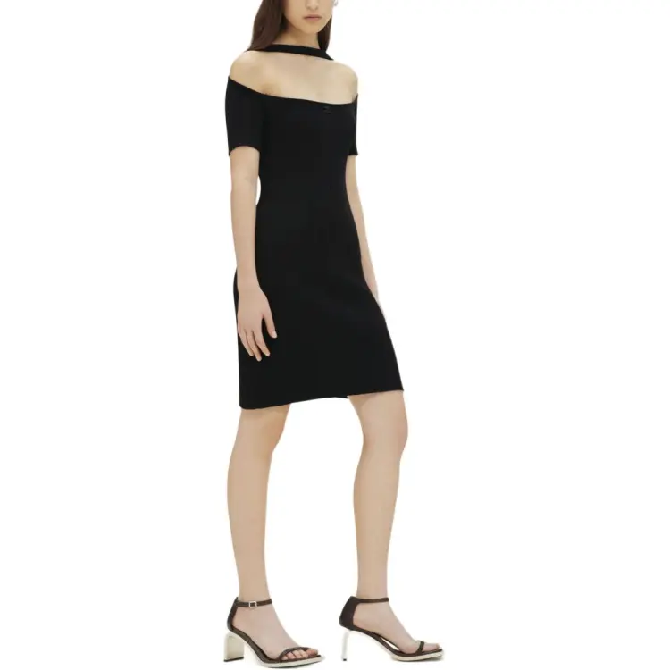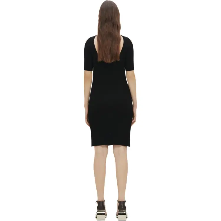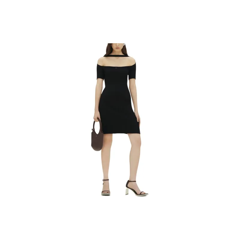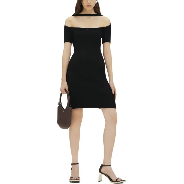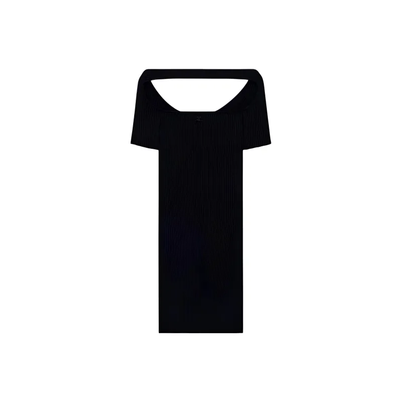 COURREGES SS24 HYPERBOLE Ребро KNIT Мини Платье Короткий Рукав Платье Женское Черное