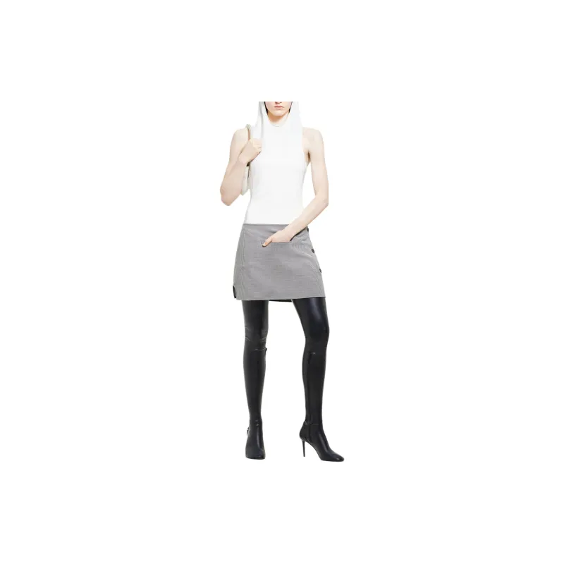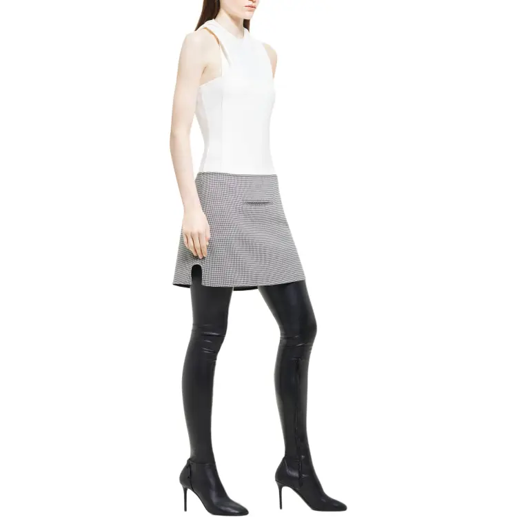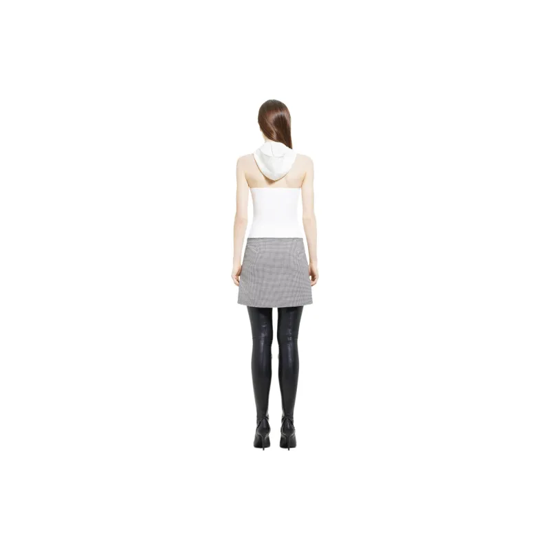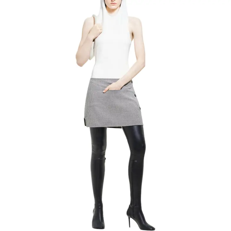 COURREGES FW24 OBLIQUE Гусиная лапка Мини Юбка Повседневная Короткая Юбка Женская Черный Натуральный Черный Натуральный
