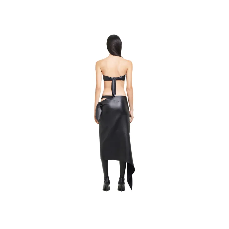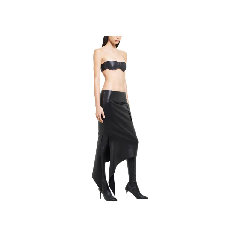 COURREGES FW24 Slash Кожаная юбка Кожа Длинный Юбка Женские Черный Черный
