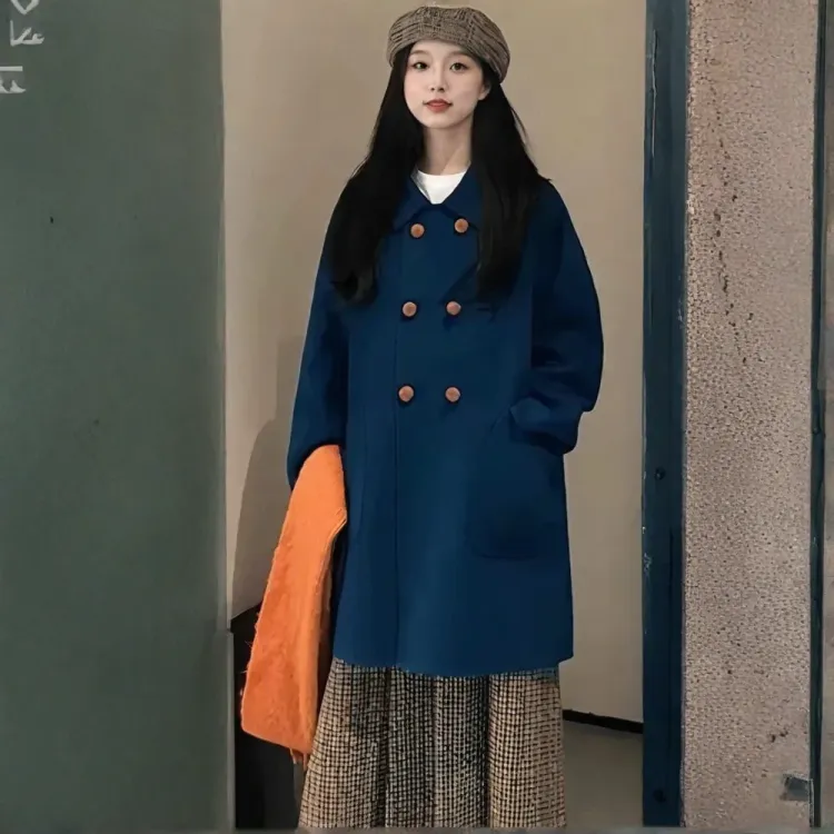COVER TIME Темно-синий Женское пальто