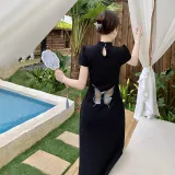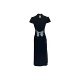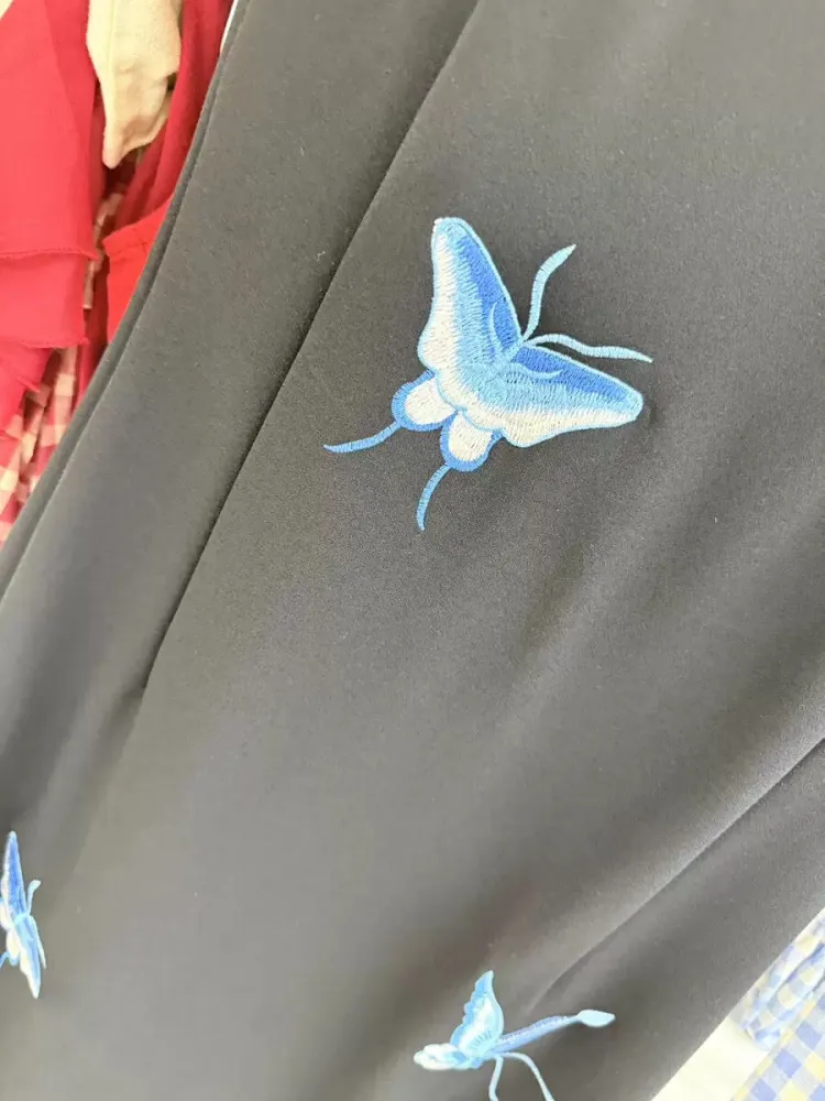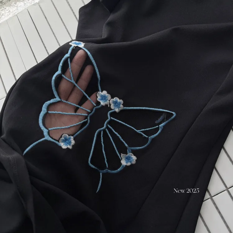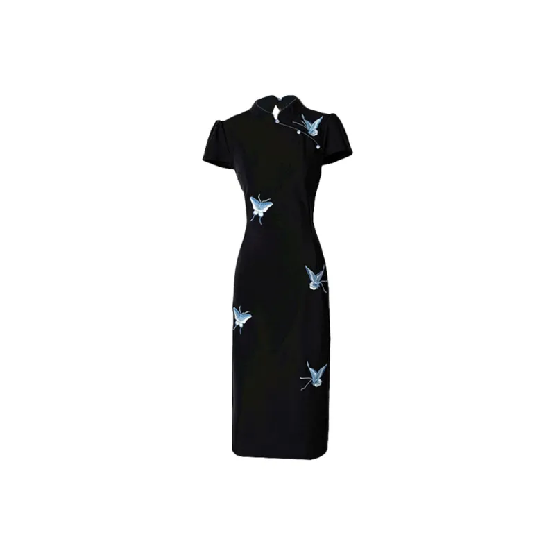 Синяя бабочка, черный, Ципао