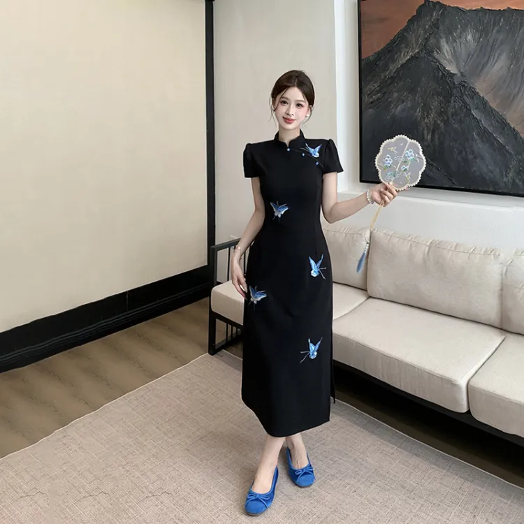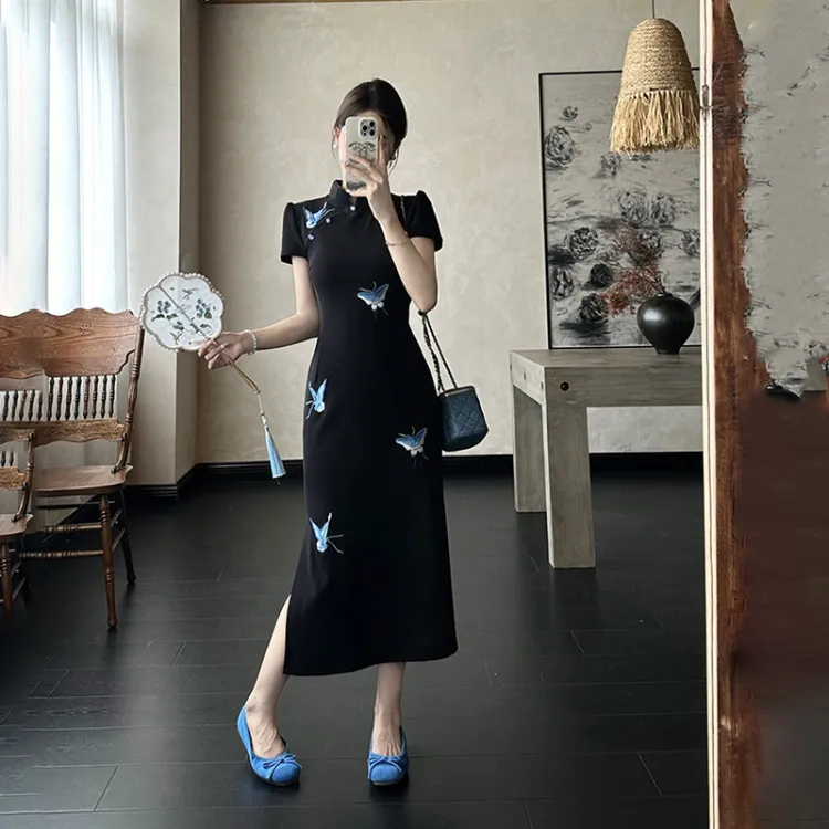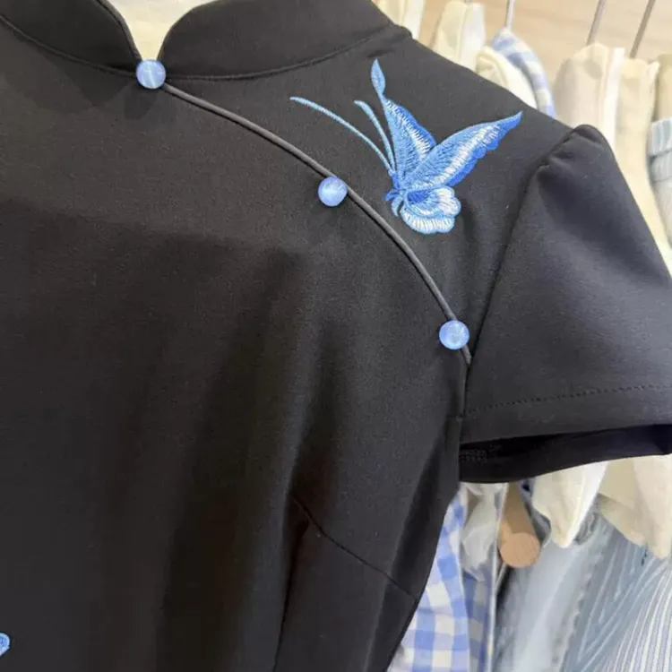 Цвет:Синяя бабочка, черный, Ципао