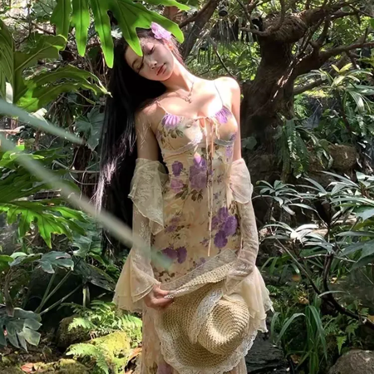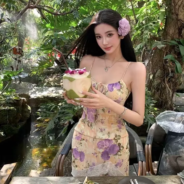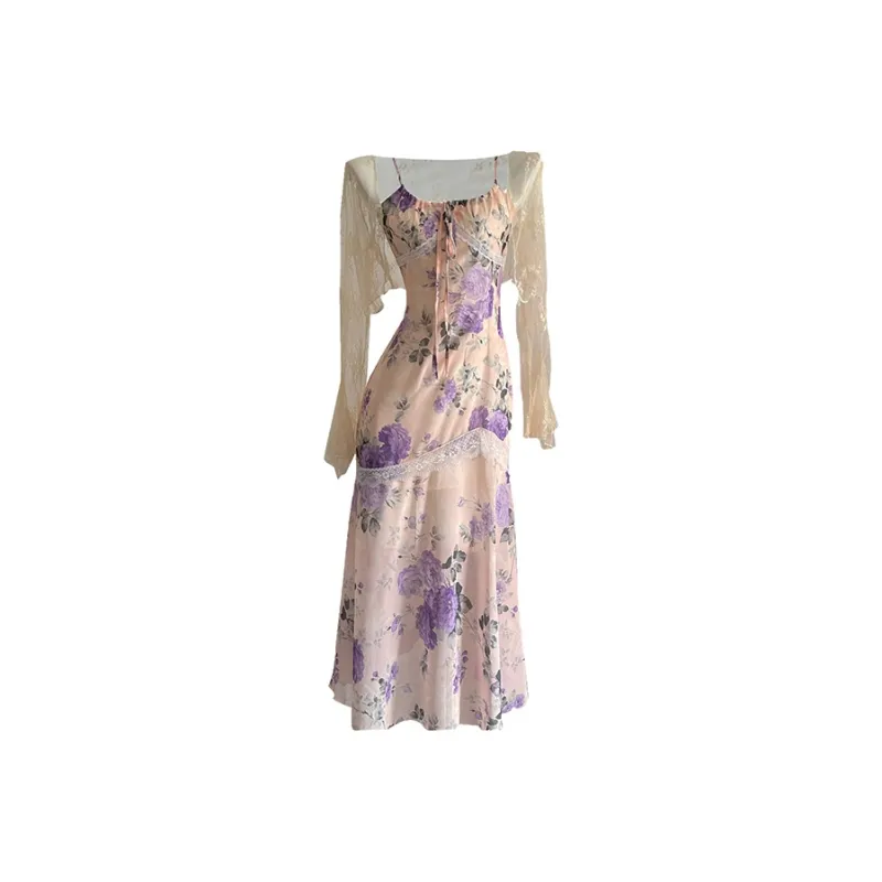 Комплект:Кардиган + Топ на бретелях Цветочное платье