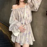 CPAURA Длинное платье с длинными рукавами женское фиолетовое