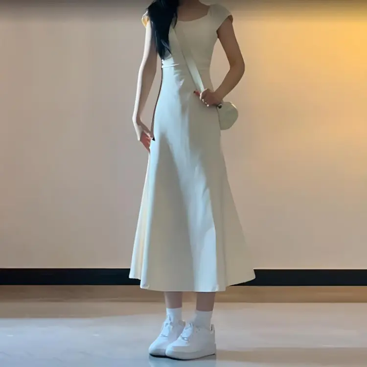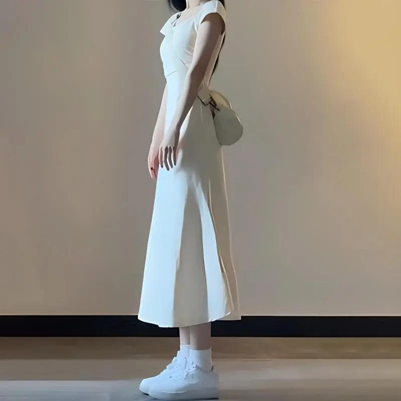 CPAURA Короткое платье с короткими рукавами женское белое