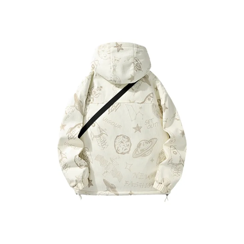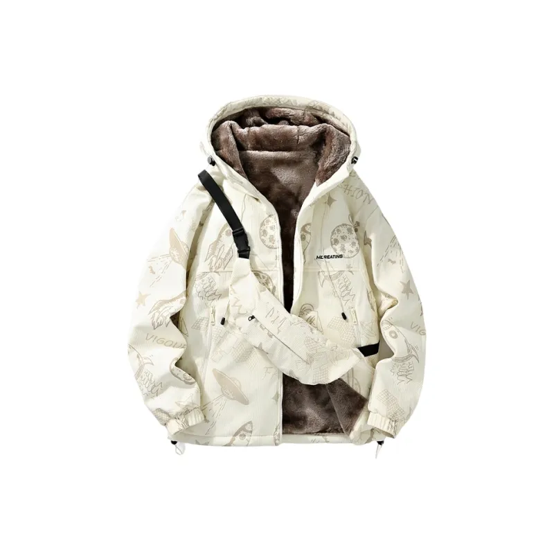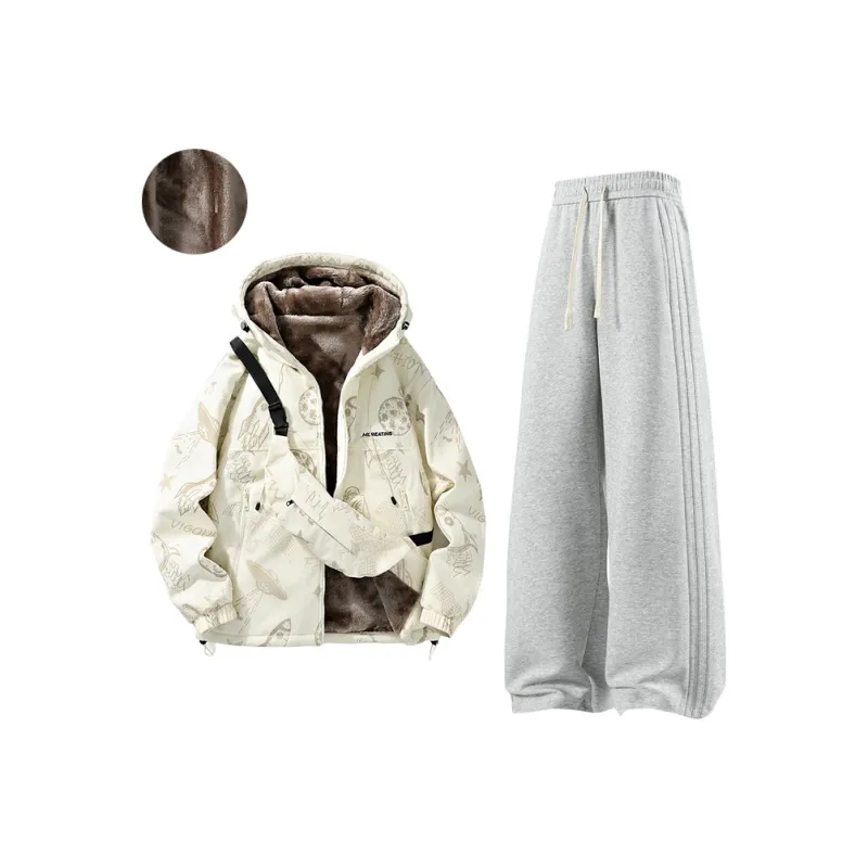 Мультяшный белый + серый [пальто с флисовой подкладкой + штаны с флисовой подкладкой]
