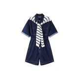 CPYT Темно-синий Женские Короткие Платья с Короткими Рукавами