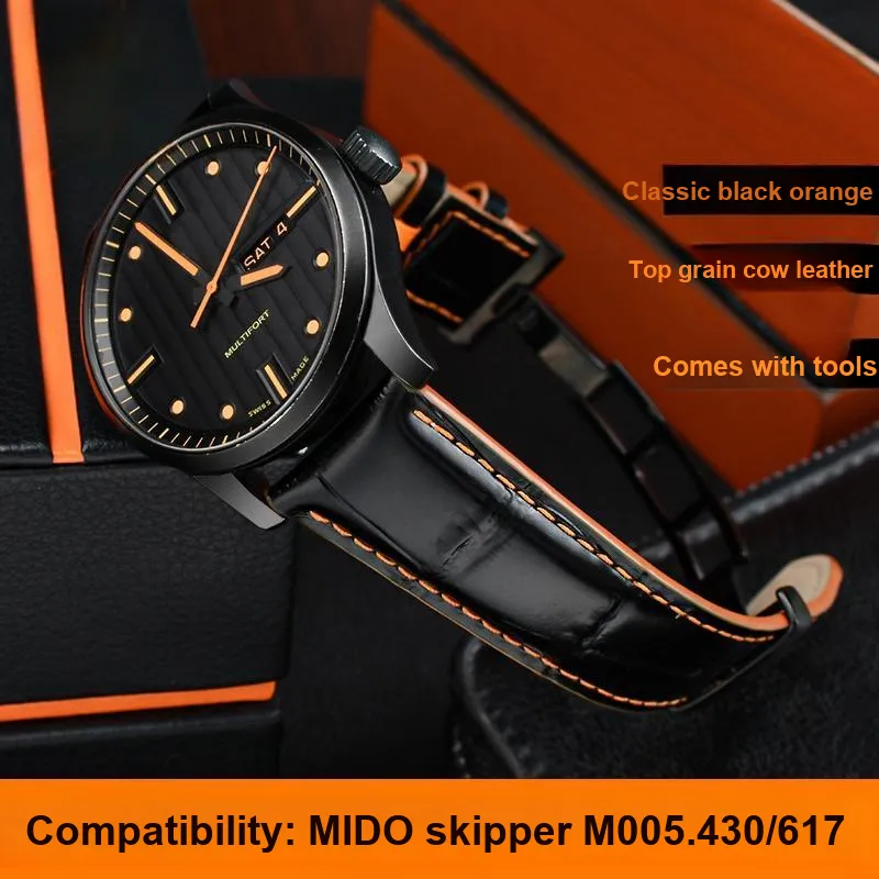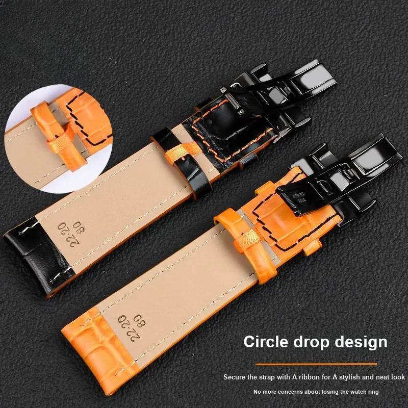 Ремешок Цвет:Чёрный с апельсиновым швом, чёрная двойная застёжка-бабочка.