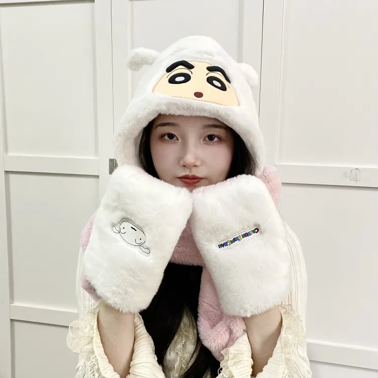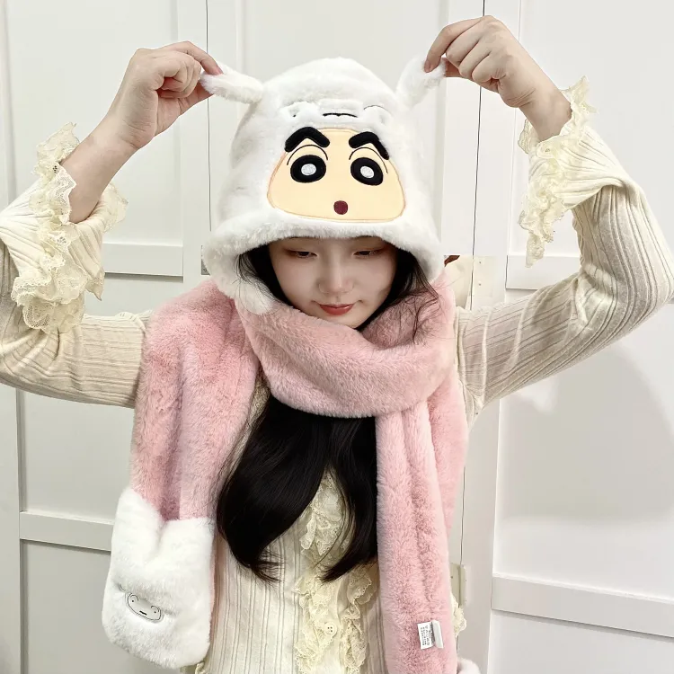 Стиль:Карандашный Шин-Чан Розовый Трехкомпонентный Набор Теплая Шапка