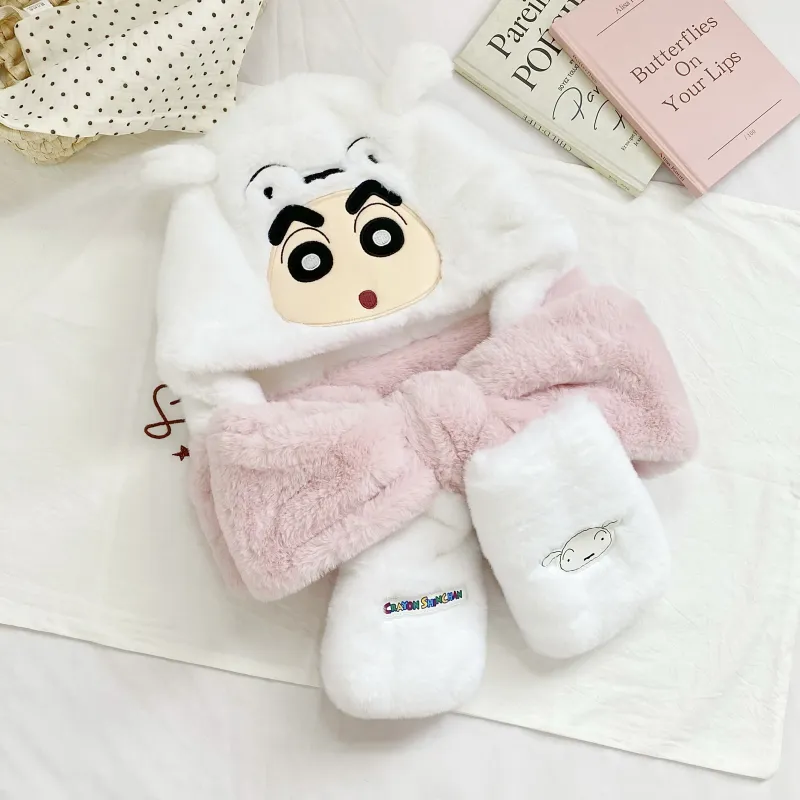 Карандашный Шин-Чан Розовый Трехкомпонентный Набор Теплая Шапка