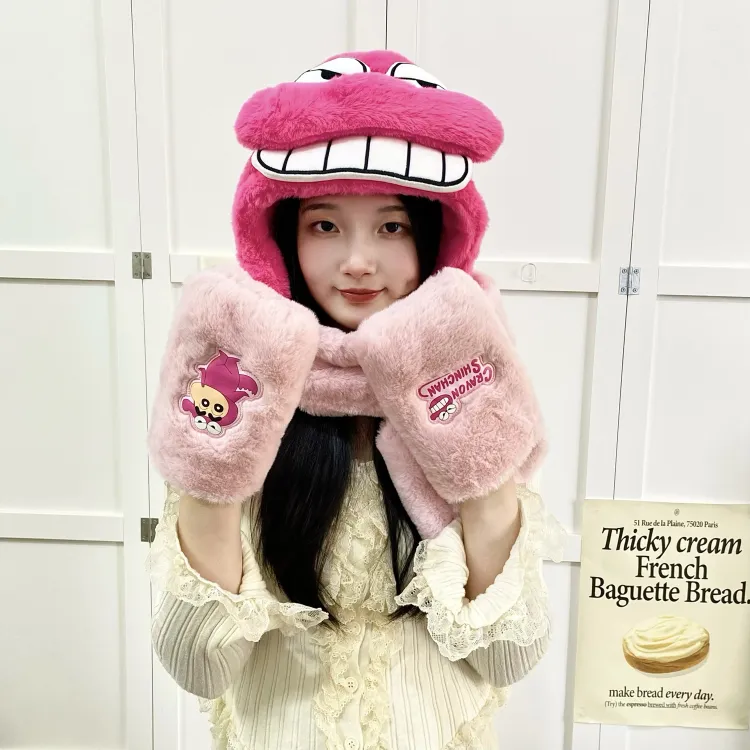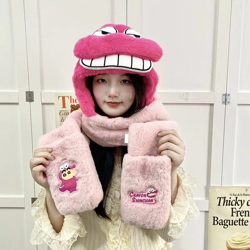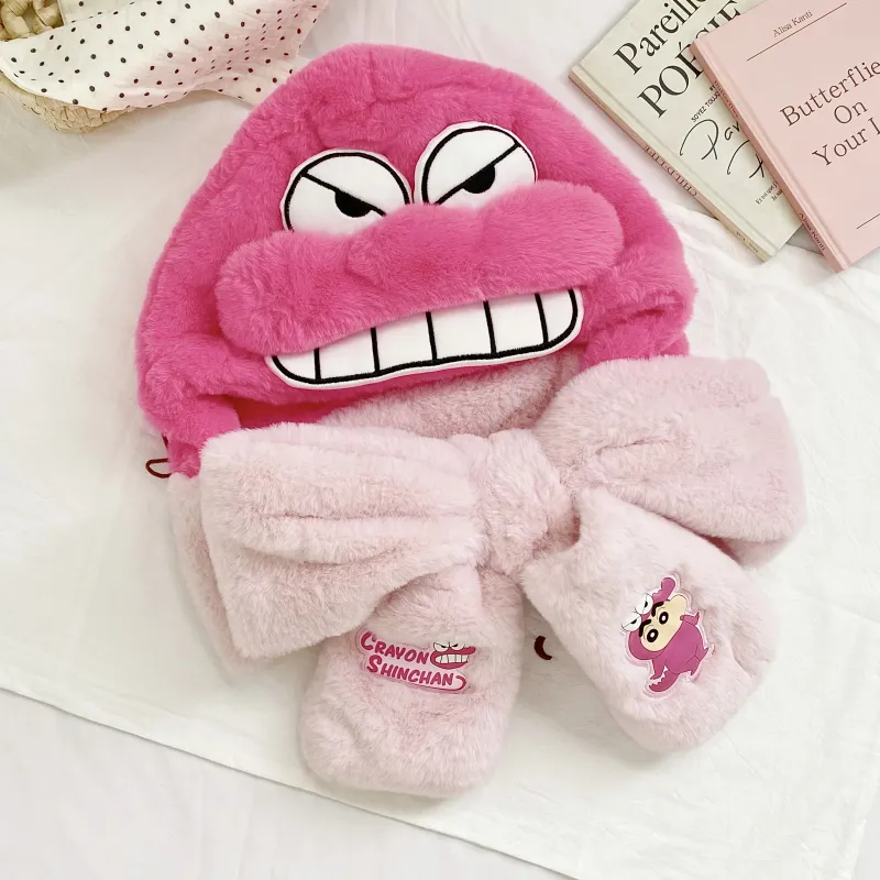 Стиль:Карандашный Шин-чан Розовый Мистер Крокодил Гора Набор из трех предметов Теплая шапка