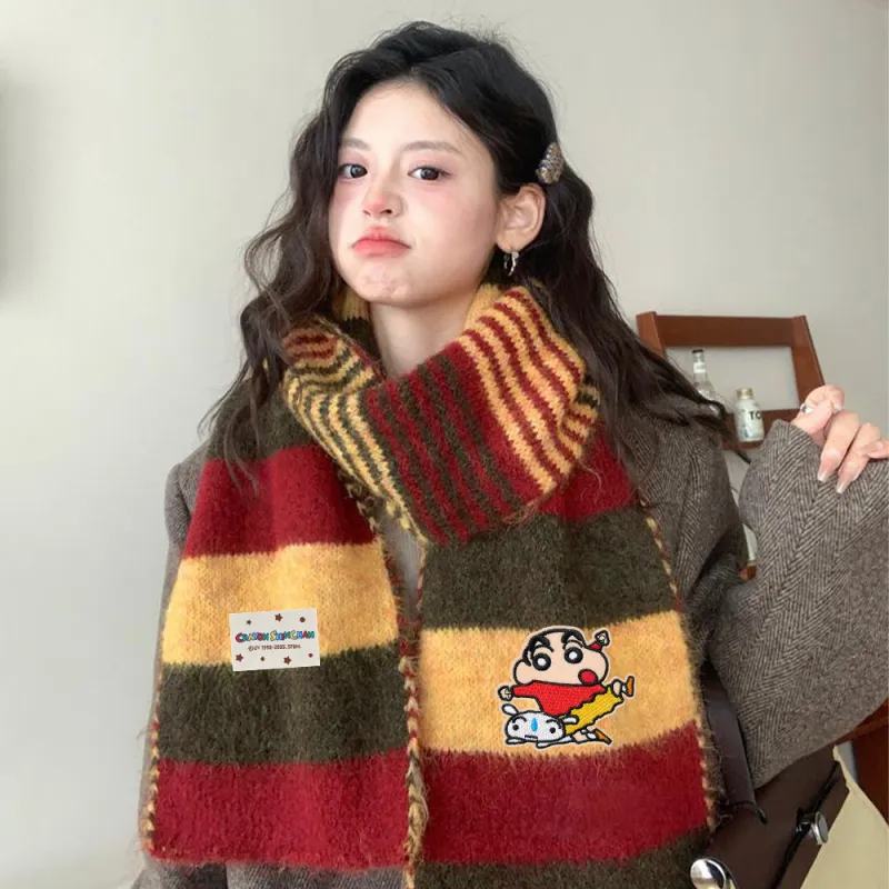Crayon Shinchan Пряжа Вязаные Шарфы Унисекс
