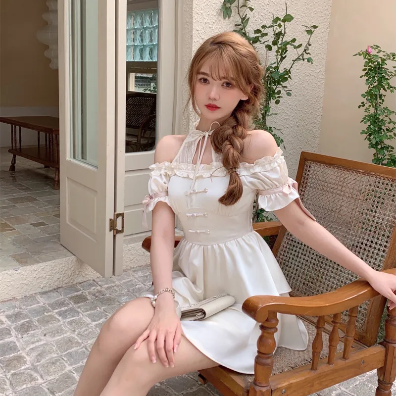 CREAMY SWEET SS22 Платье с воротником-халтер Абрикос