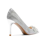 Crelinkxlat Французский Фея Мягкий Элегантность Минималистский стиль Высокие каблуки Женское Серебро