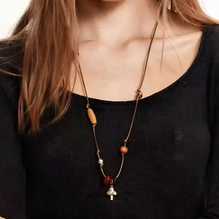 Стиль:Деревянный лесной гриб, ожерелье из плетеной веревки