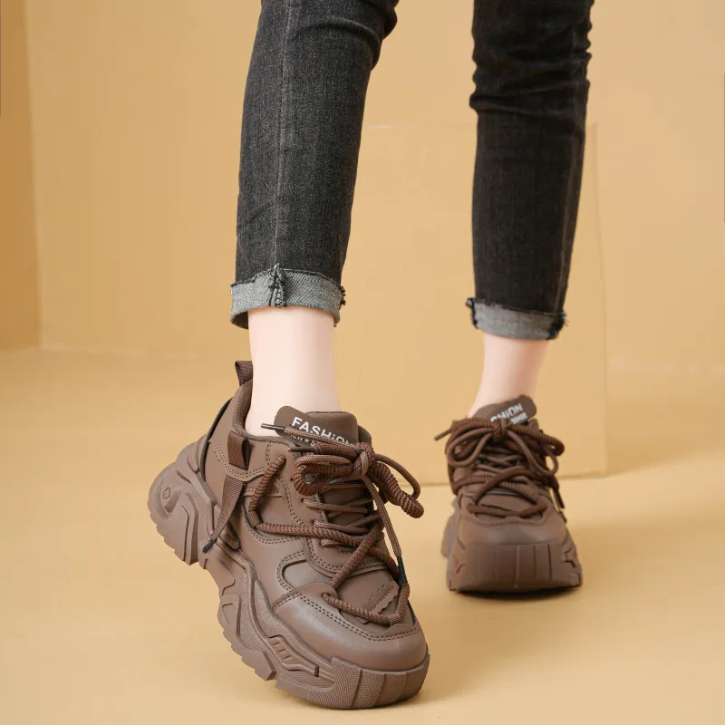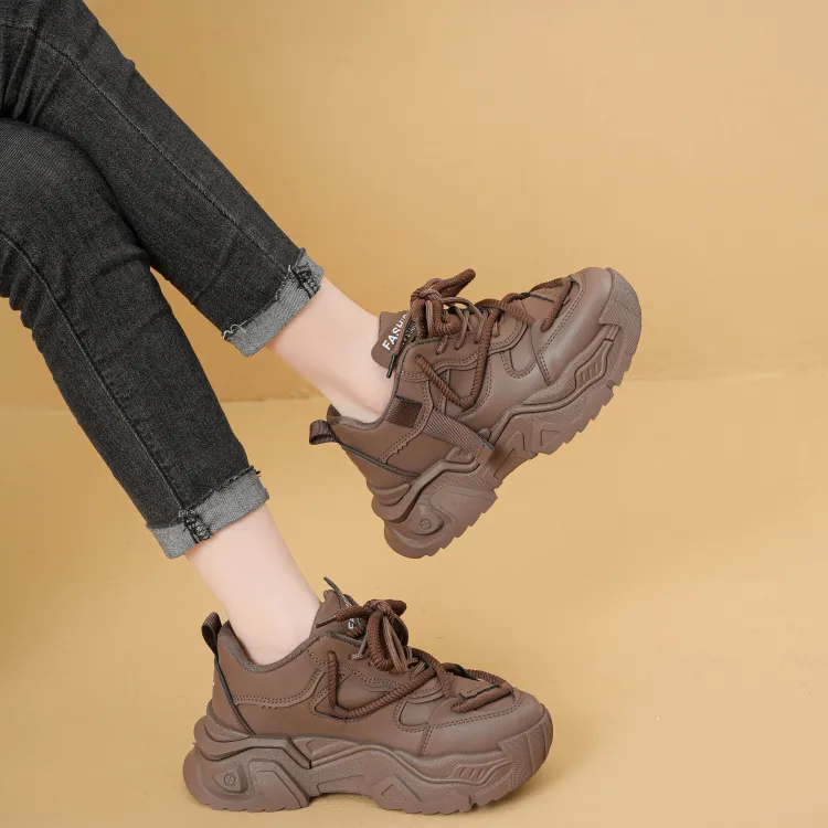 Крокодил Low Топ Толстая подошва Кроссовки Женские Коричневый