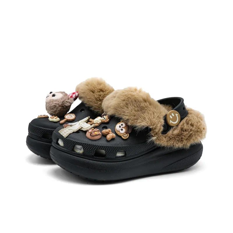 Crocs Classic Clog Плюшевый Шоколадные Сабо Унисекс Черный