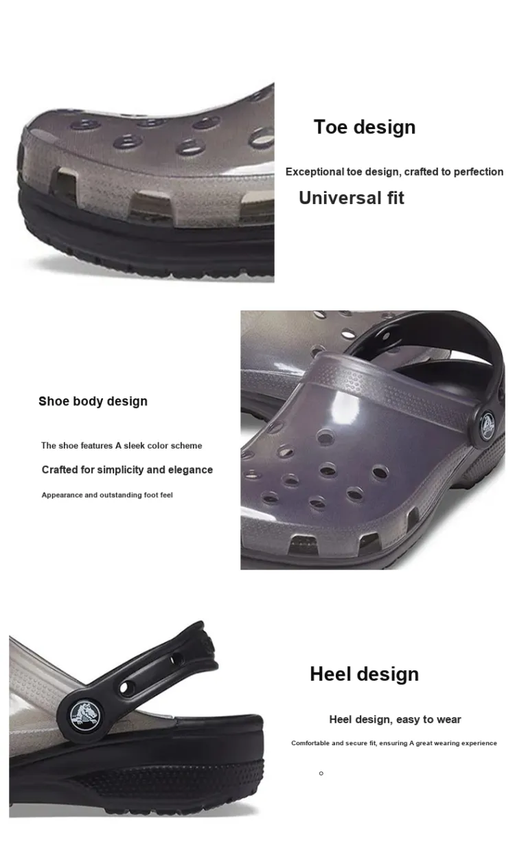 Crocs Classic Прозрачный Clog Sabo Унисекс Черный Серый