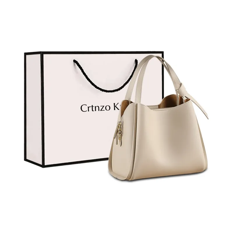 Crtnzo Kroez Коровья кожа Через плечо Сумка Стандартная Женская Светлый Абрикос Серый Белый