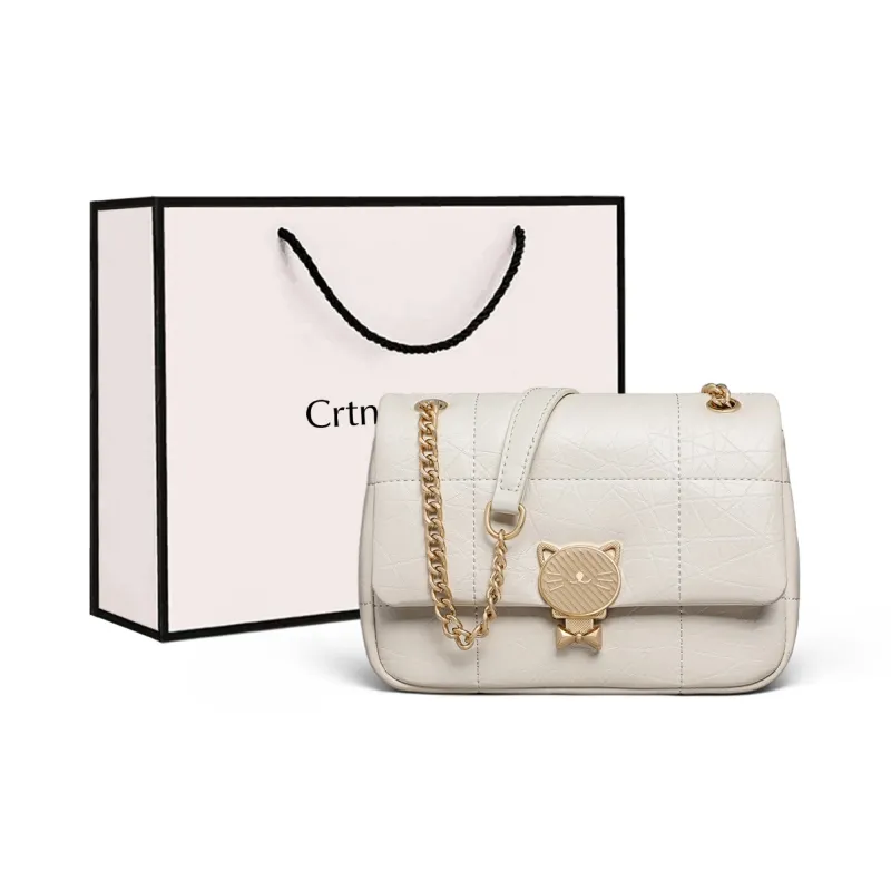 Crtnzo Kroez Коровья кожа Одно плечо Через плечо Маленькая квадратная сумка Стандартная Женская Экрю
