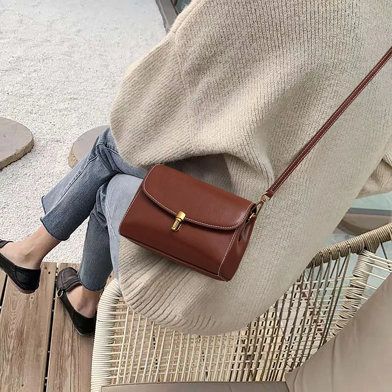 Crtnzo Kroez Сумка через плечо из коровьей кожи маленькая квадратная сумка стандартная женская кофейного цвета