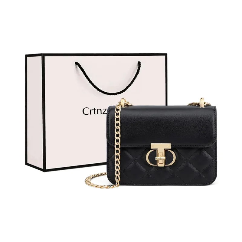 Crtnzo Kroez Сумка через плечо из коровьей кожи маленькая квадратная сумка стандартная женская экрю черный