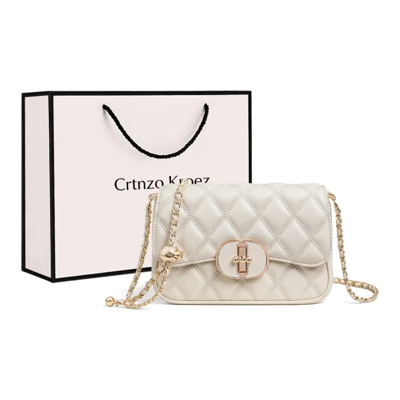 Crtnzo Kroez Коровья кожа Маленькая квадратная сумка Сумка через плечо Стандартная Женская Экрю