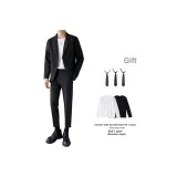 Комплект одежды (Черный деловой костюм + Черные штаны) с галстуком + Длинная футболка + Ремень