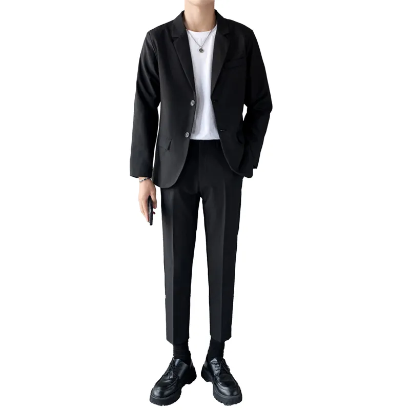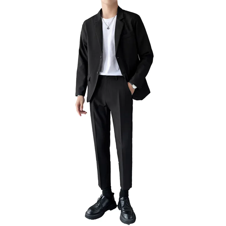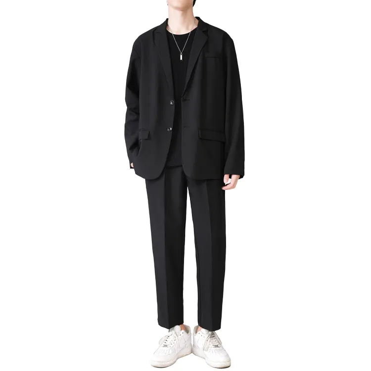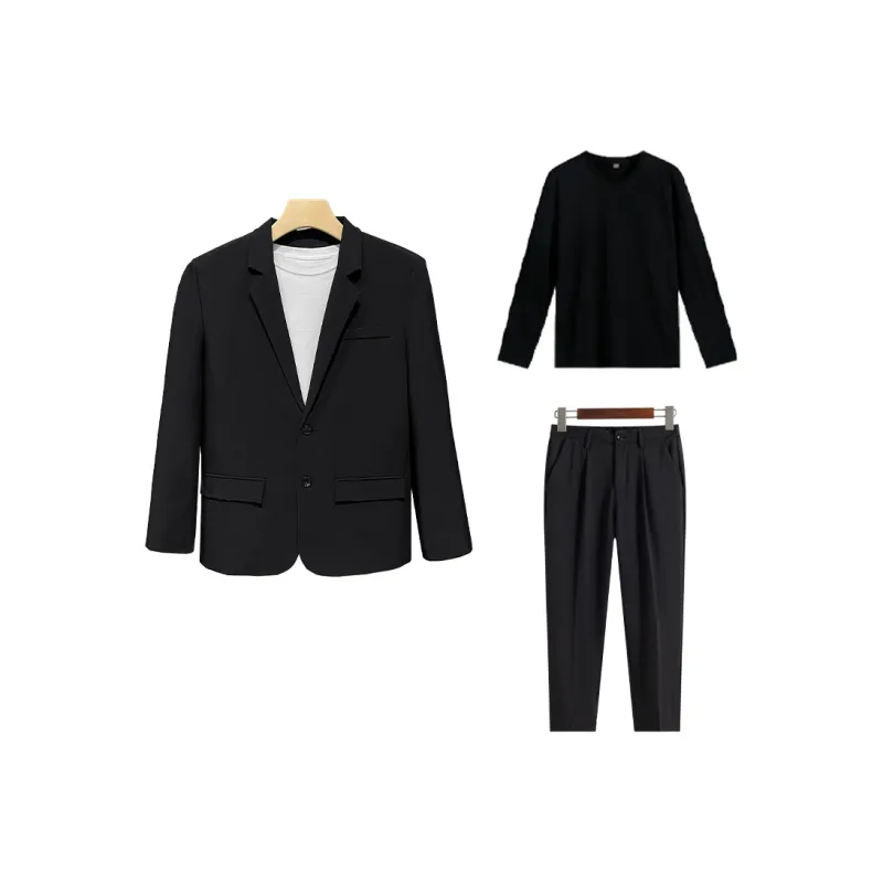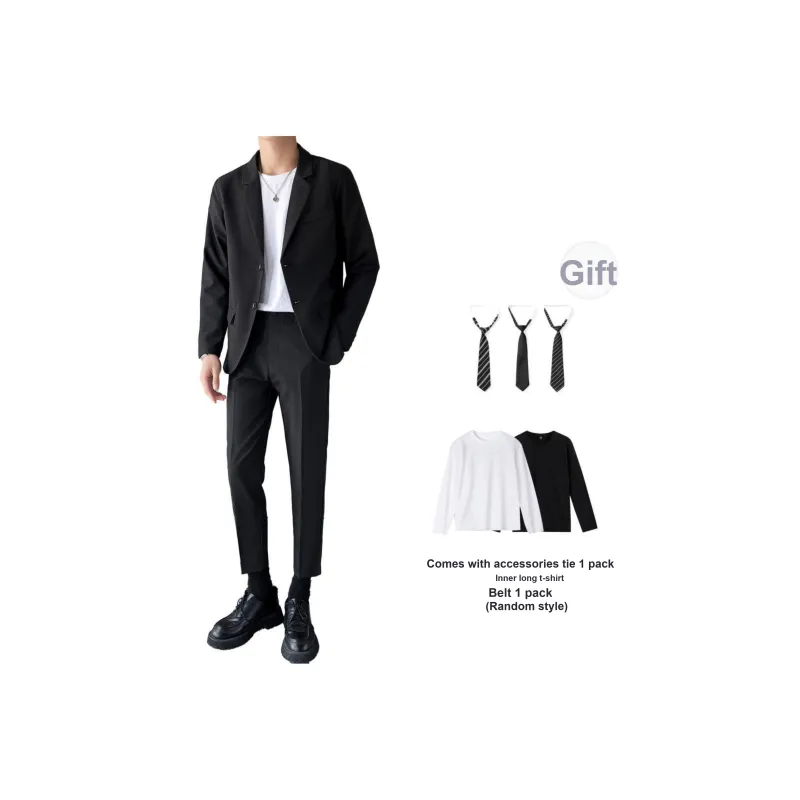 Комплект одежды (Черный бизнес-костюм + Черные штаны длиной до щиколотки) с галстуком + длинной футболкой + ремнем