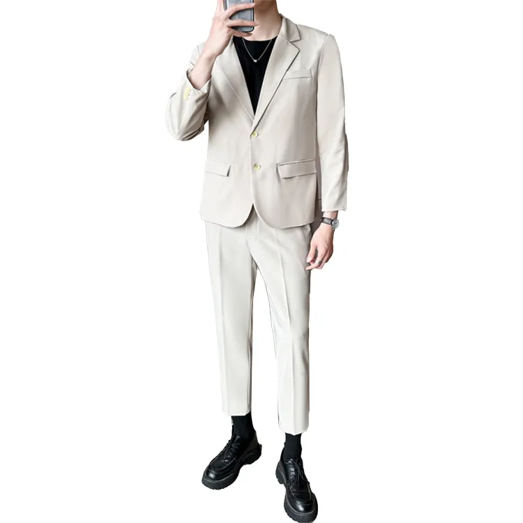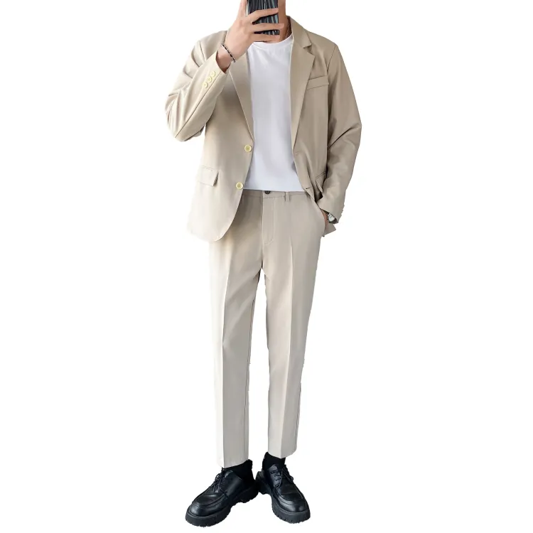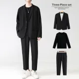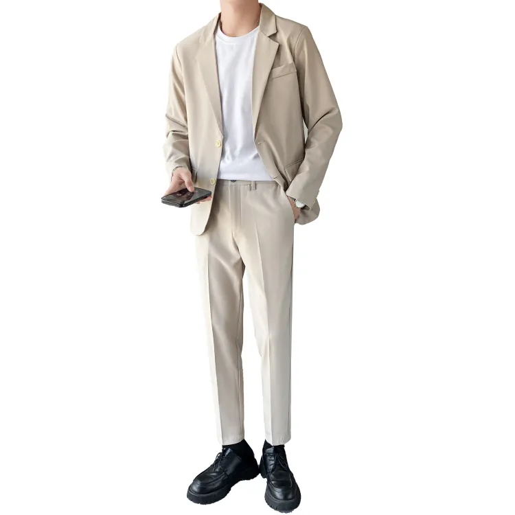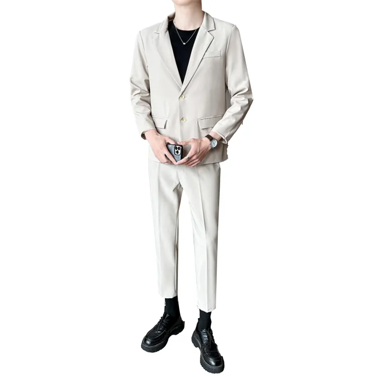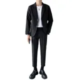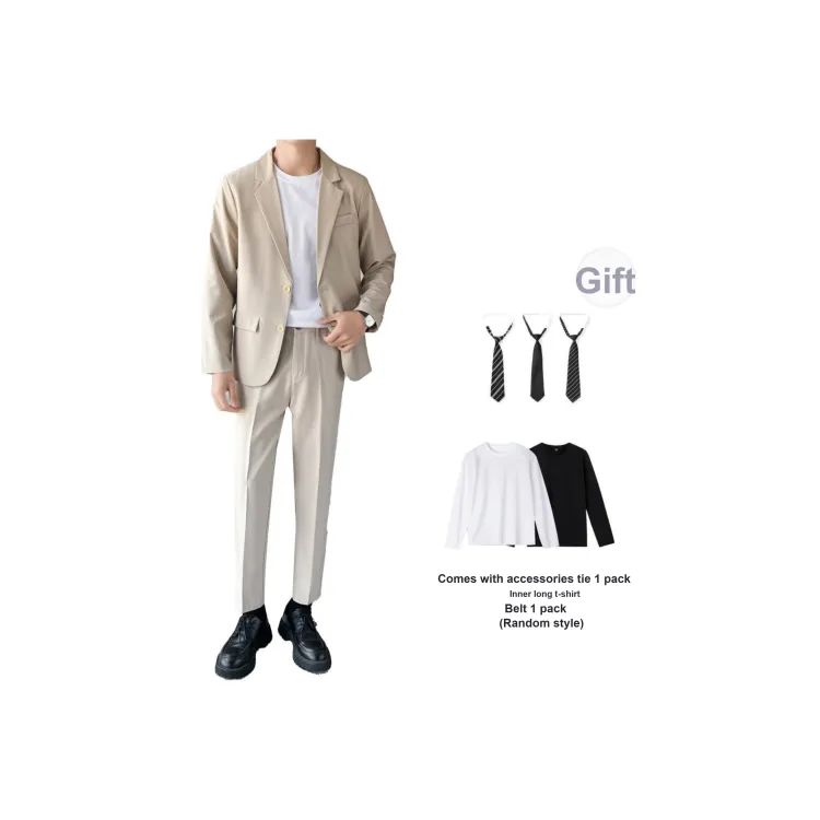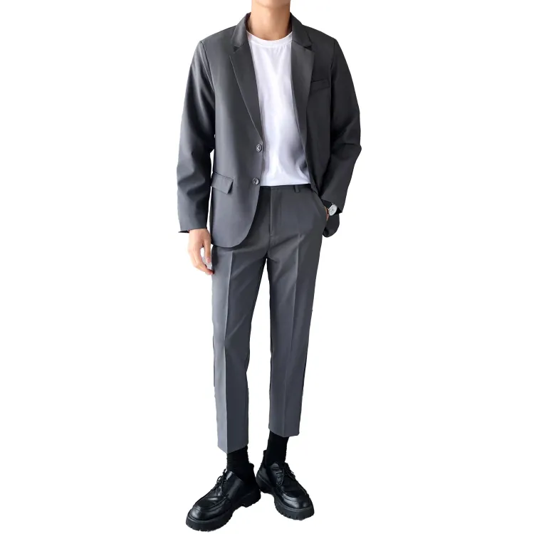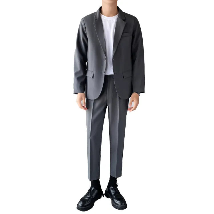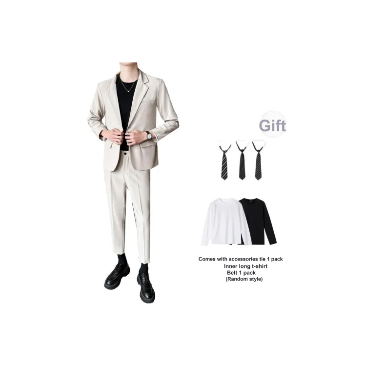 Комплект одежды (Серый бизнес-костюм + Серый штаны длиной до щиколотки) с галстуком + длинной футболкой + ремнем включено