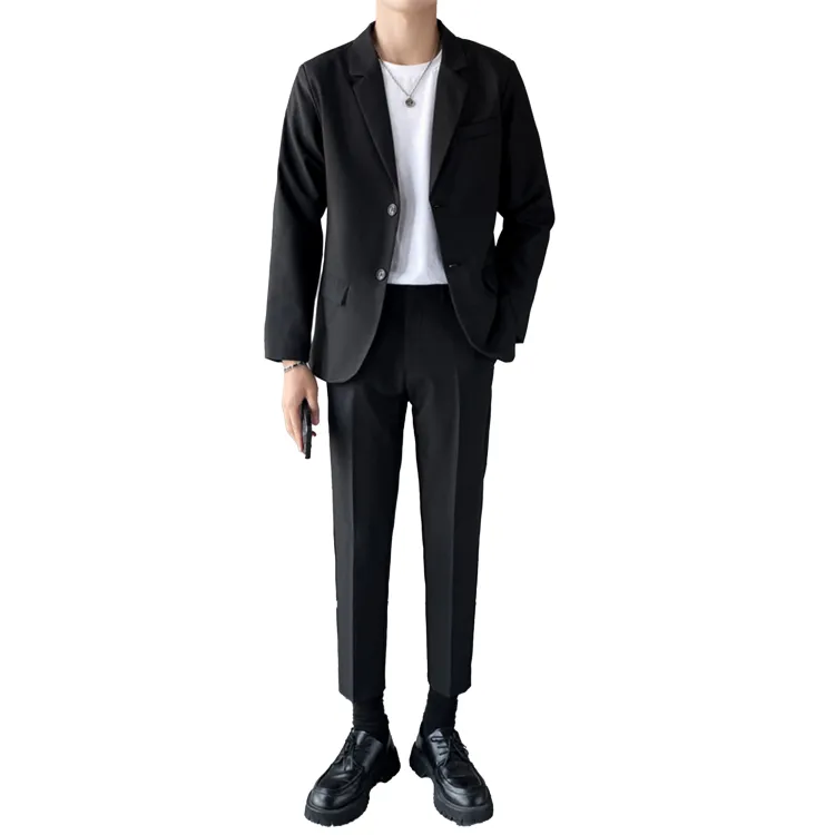 Комплект:Комплект одежды (Черный бизнес-костюм + Черные штаны длиной до щиколотки) с галстуком + длинной футболкой + ремнем