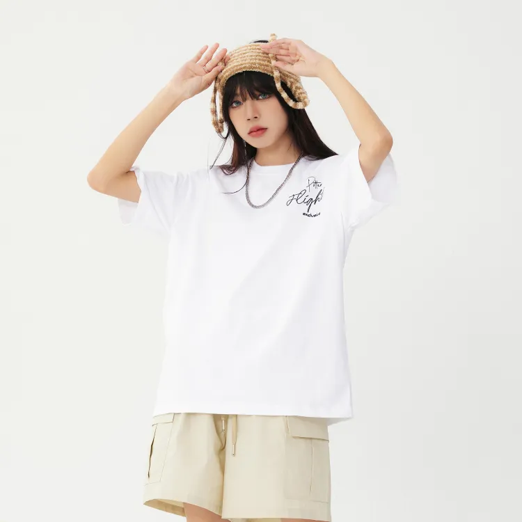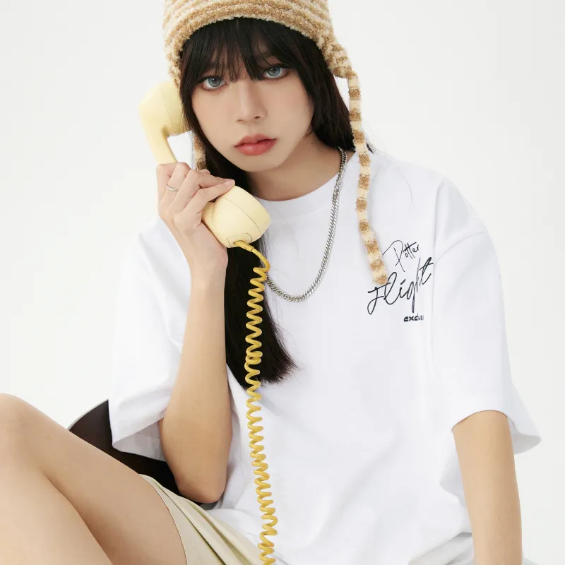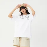 Комплект одежды (Белая короткая футболка с коротким рукавом + Темно-синие джинсы) В комплекте с ожерельем