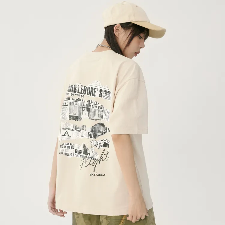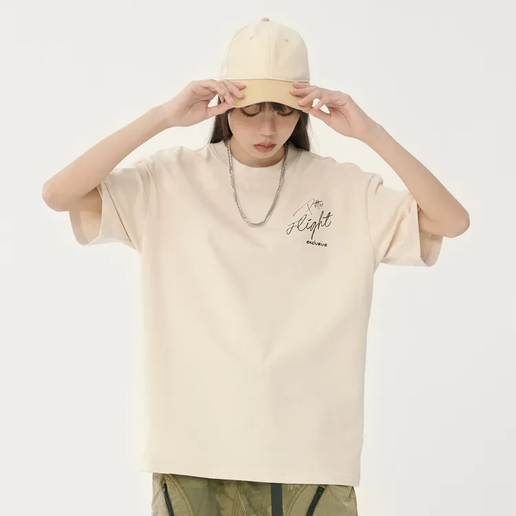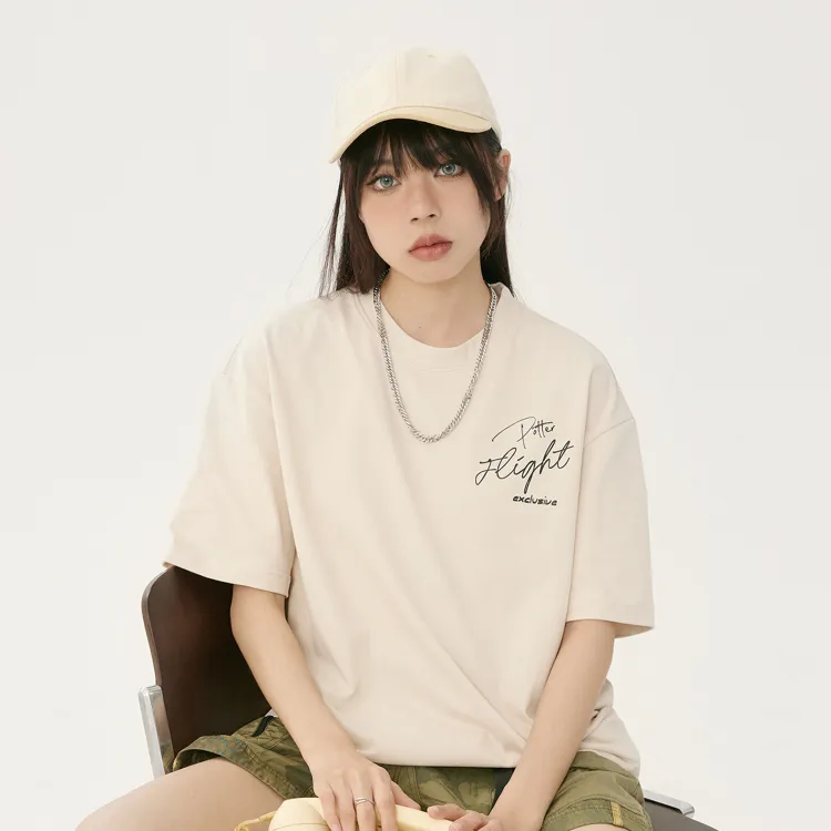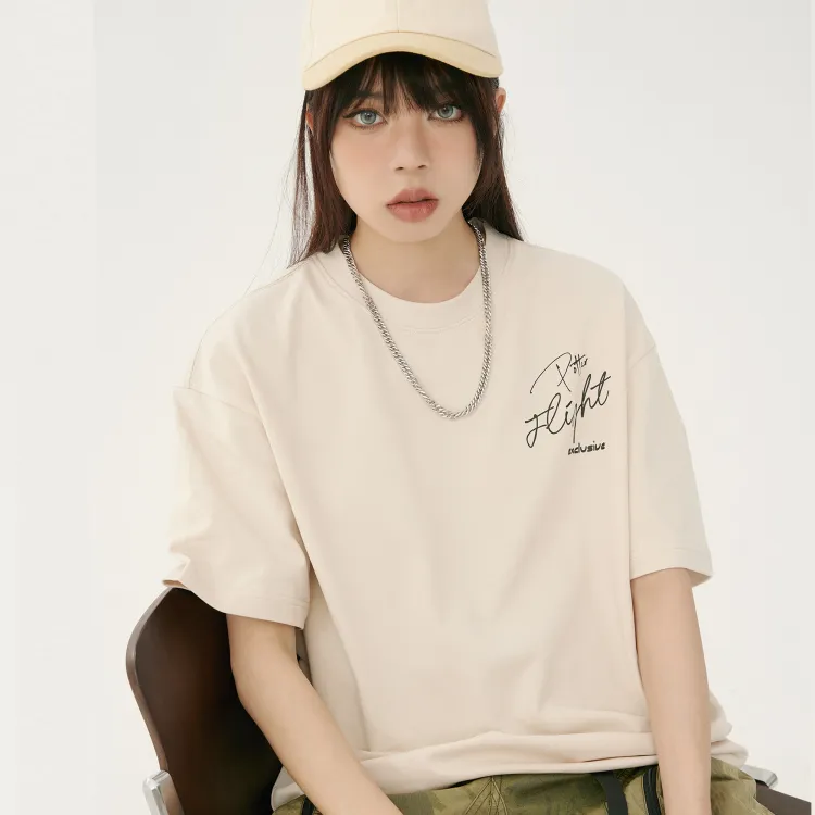Комплект одежды (Абрикосовый короткий рукав топ + Светло-синие джинсы) с ожерельем