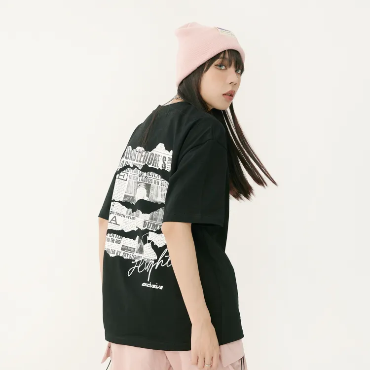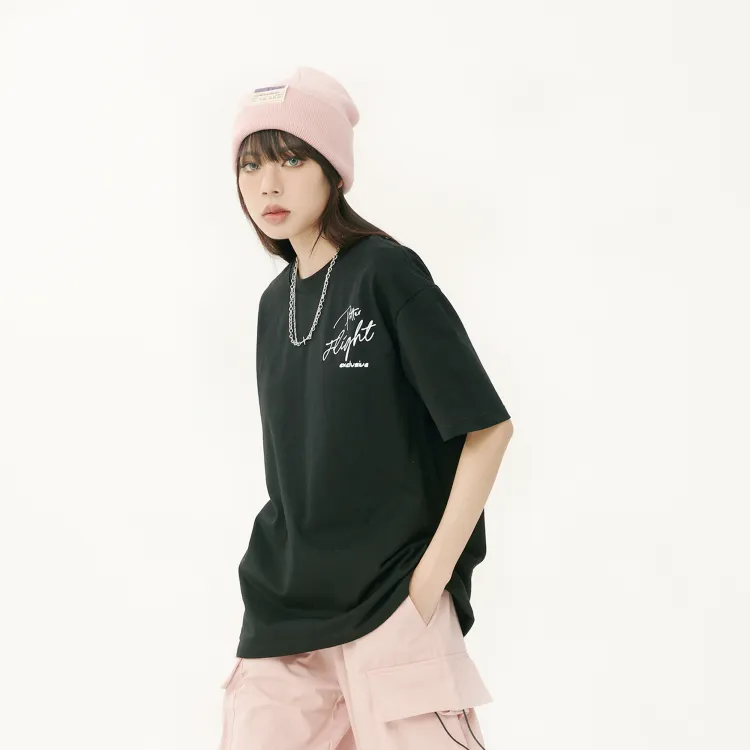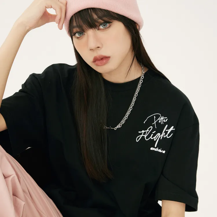 Комплект одежды (Черный короткий рукав топ + Черные джинсы) с ожерельем