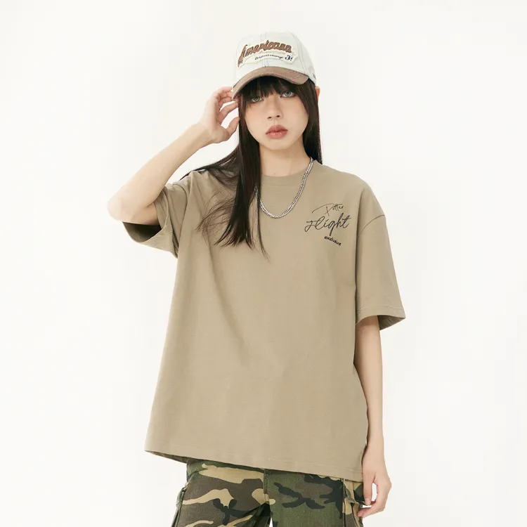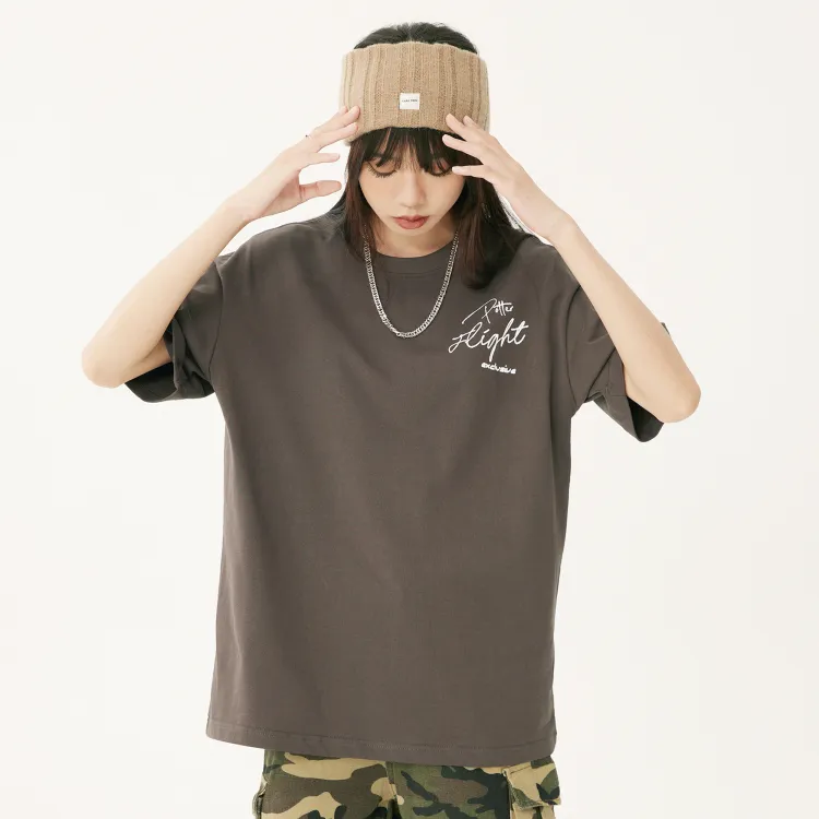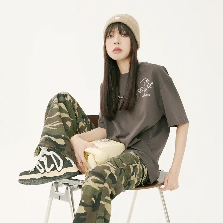 Комплект одежды (Темно-серый короткий рукав топ + Светло-синие джинсы) с ожерельем