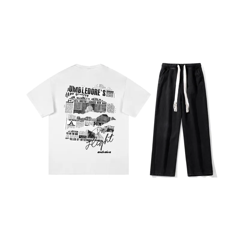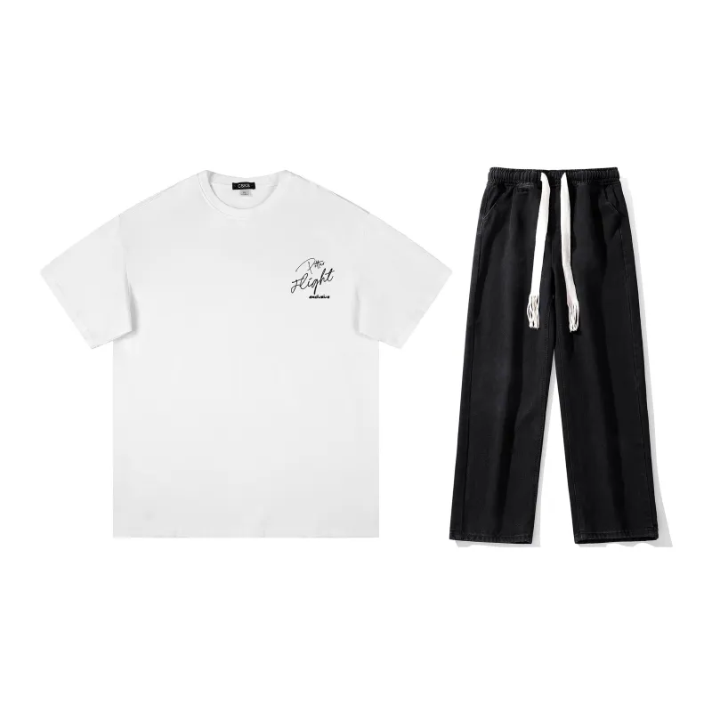 Комплект:Комплект одежды (Белая рубашка с короткими рукавами + Черные джинсы) с ожерельем