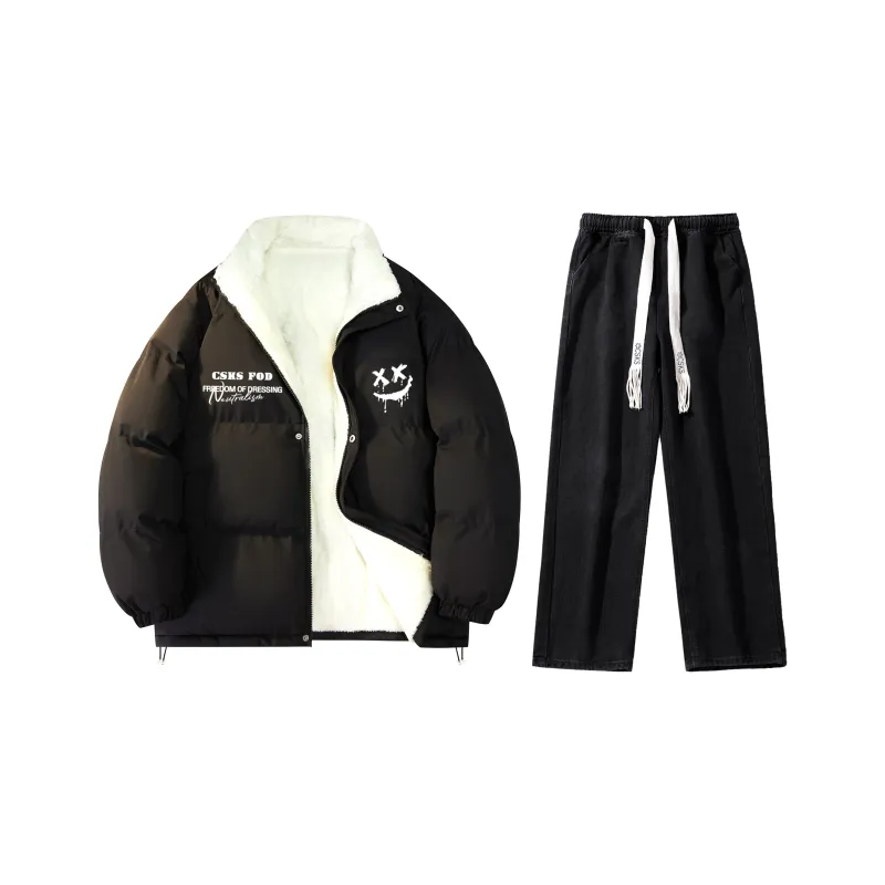 Комплекты одежды (Obsidian Black, утолщенный с подкладкой из шерпа + Темно-синий, вымытый джинсы)