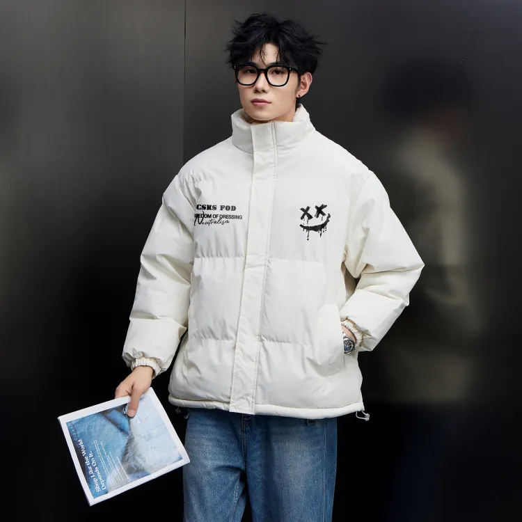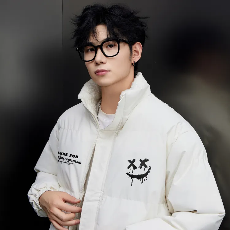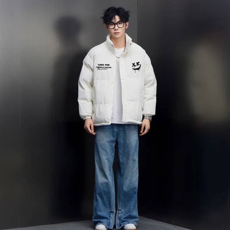 Комплект одежды (Айвори Белый, утолщенный и с подкладкой из шерпы + Черные джинсы с эффектом вымытого)