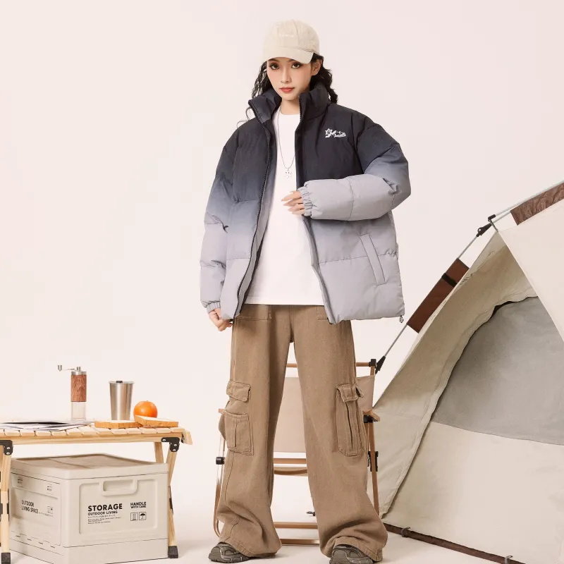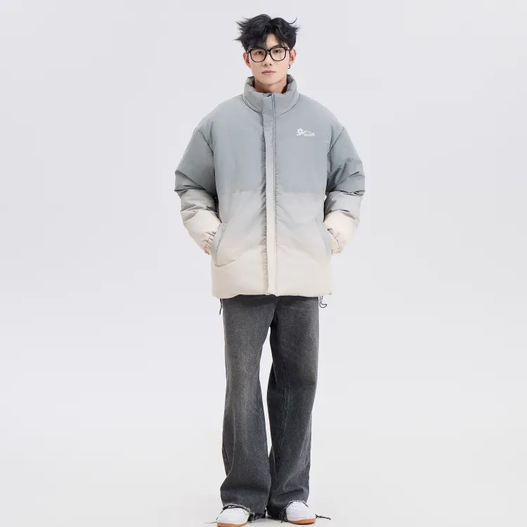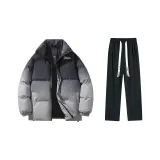 Комплект одежды (Серый хлопковый пуховик + штаны с флисовой подкладкой, черные)