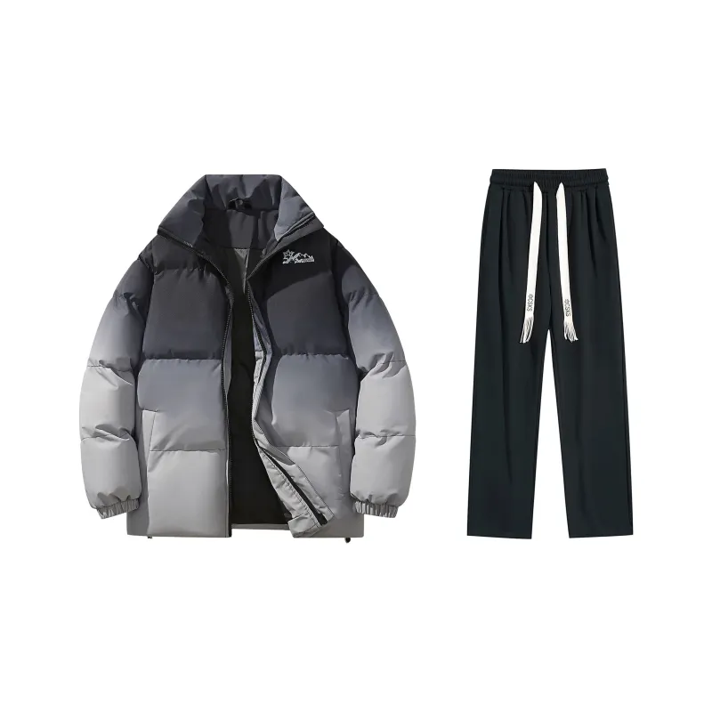Комплект:Комплект одежды (Черный хлопковый пуховик + штаны с флисовой подкладкой, черные)