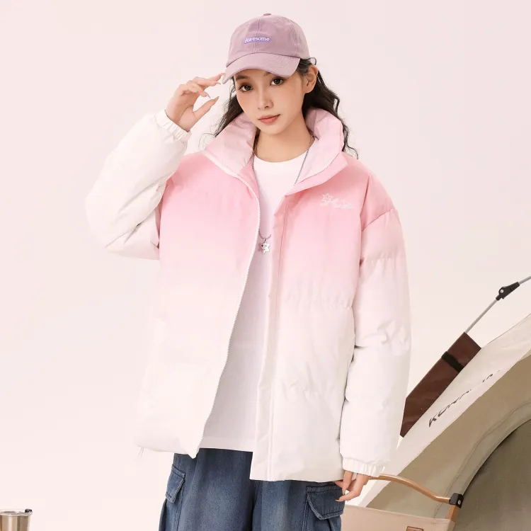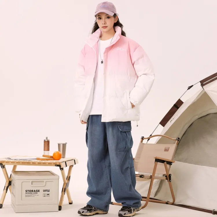 Комплект одежды (Розовый хлопковый пуховик + штаны с флисовой подкладкой, черные)