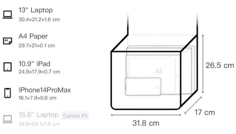 31,8 см в длину, 16,99 см в ширину, 26,49 см в высоту