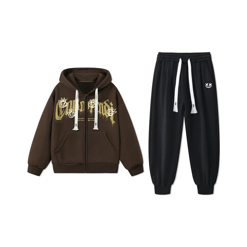 Комплект:Свитшот кофейного цвета + черные штаны