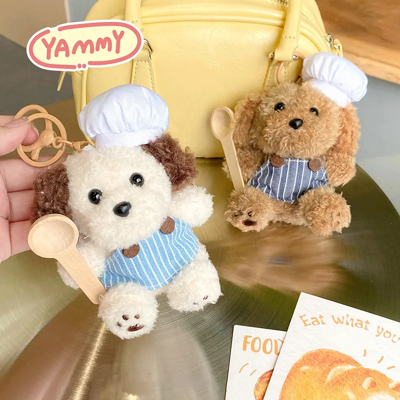 Милый Chef Waving Spatula Щенок Кукла Плюшевая Подвеска 12 см 13 см Длина Тела